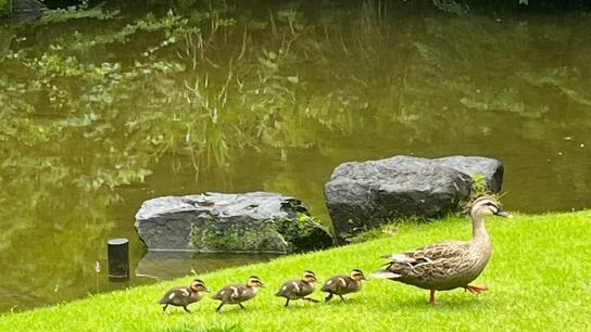 池周辺にはウッドデッキを設置、北門を移設し、芝生広場側に新しく出入り口を設けました。