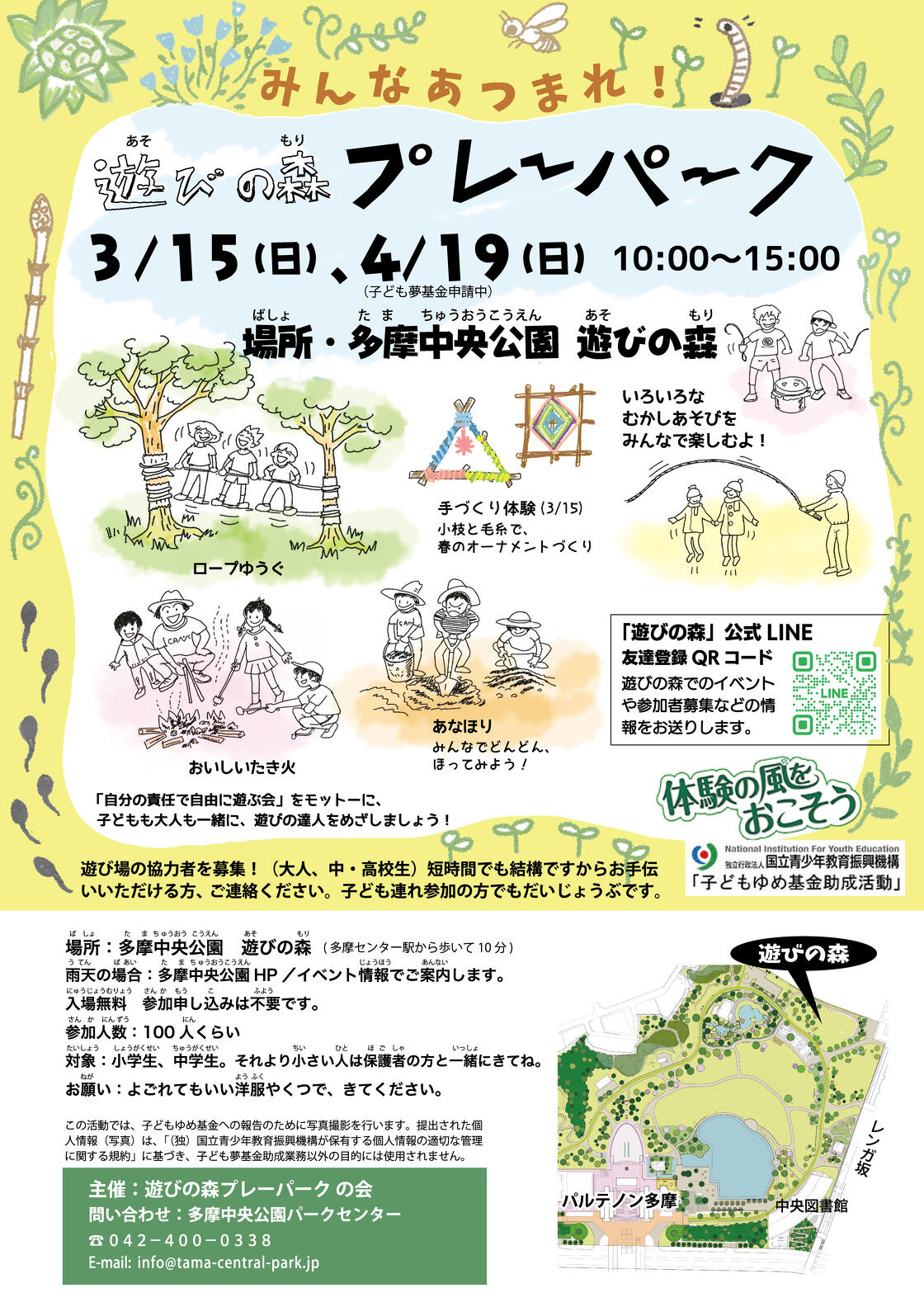 多摩中央公園の遊びの森にて、プレーパークを開催します!