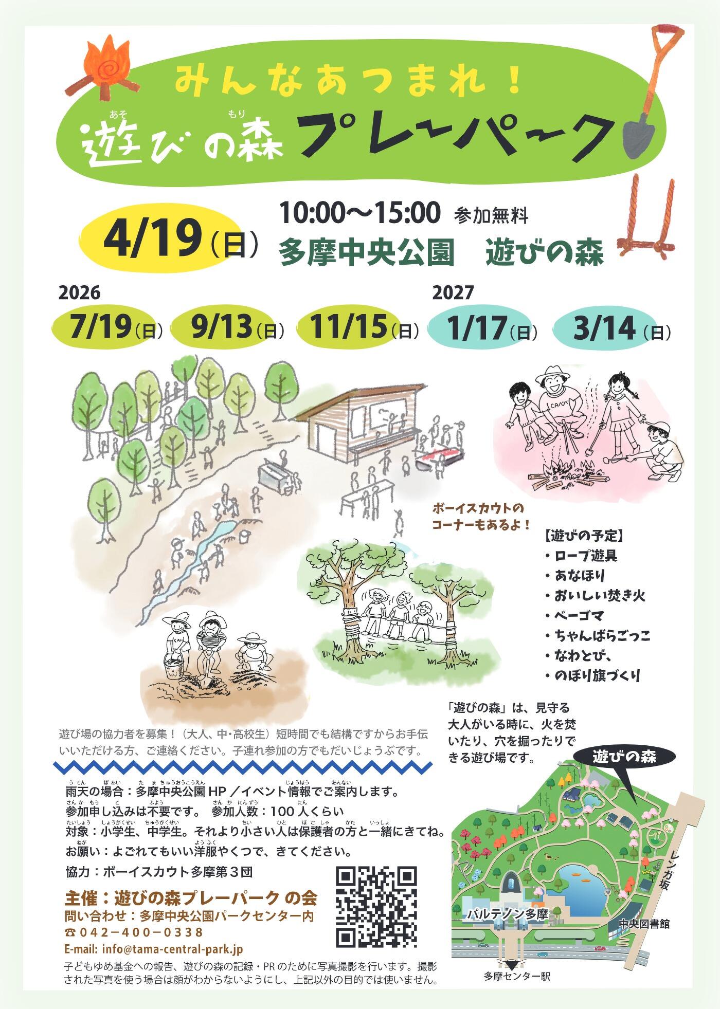 多摩中央公園の遊びの森にて、プレーパークを開催します!