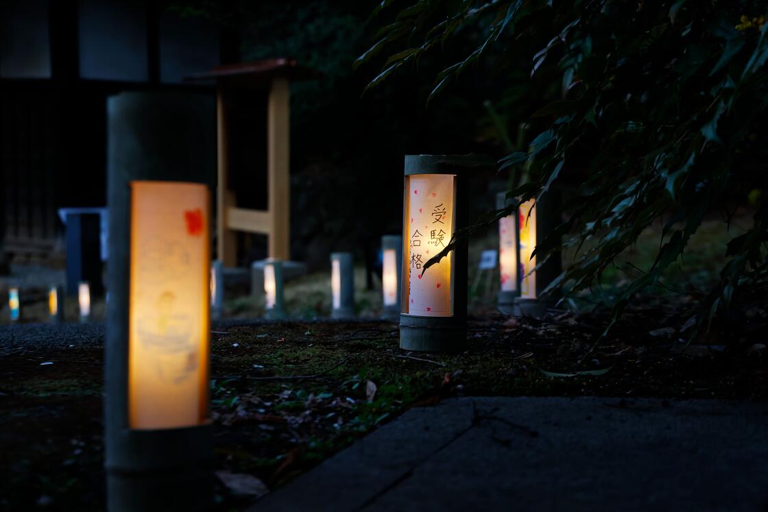 旧富澤家住宅の建物内にて、子どもたちの個性あふれる竹灯籠を展示しております。