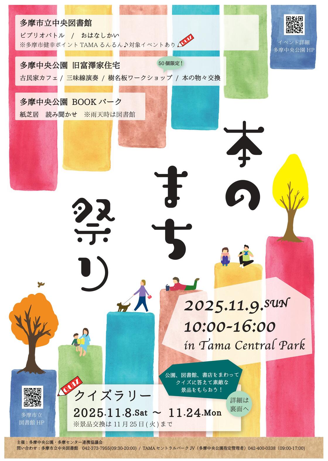 秋といえば読書の季節ですね。多摩中央公園と多摩市立中央図書館を中心に本に関するイベントを開催します。