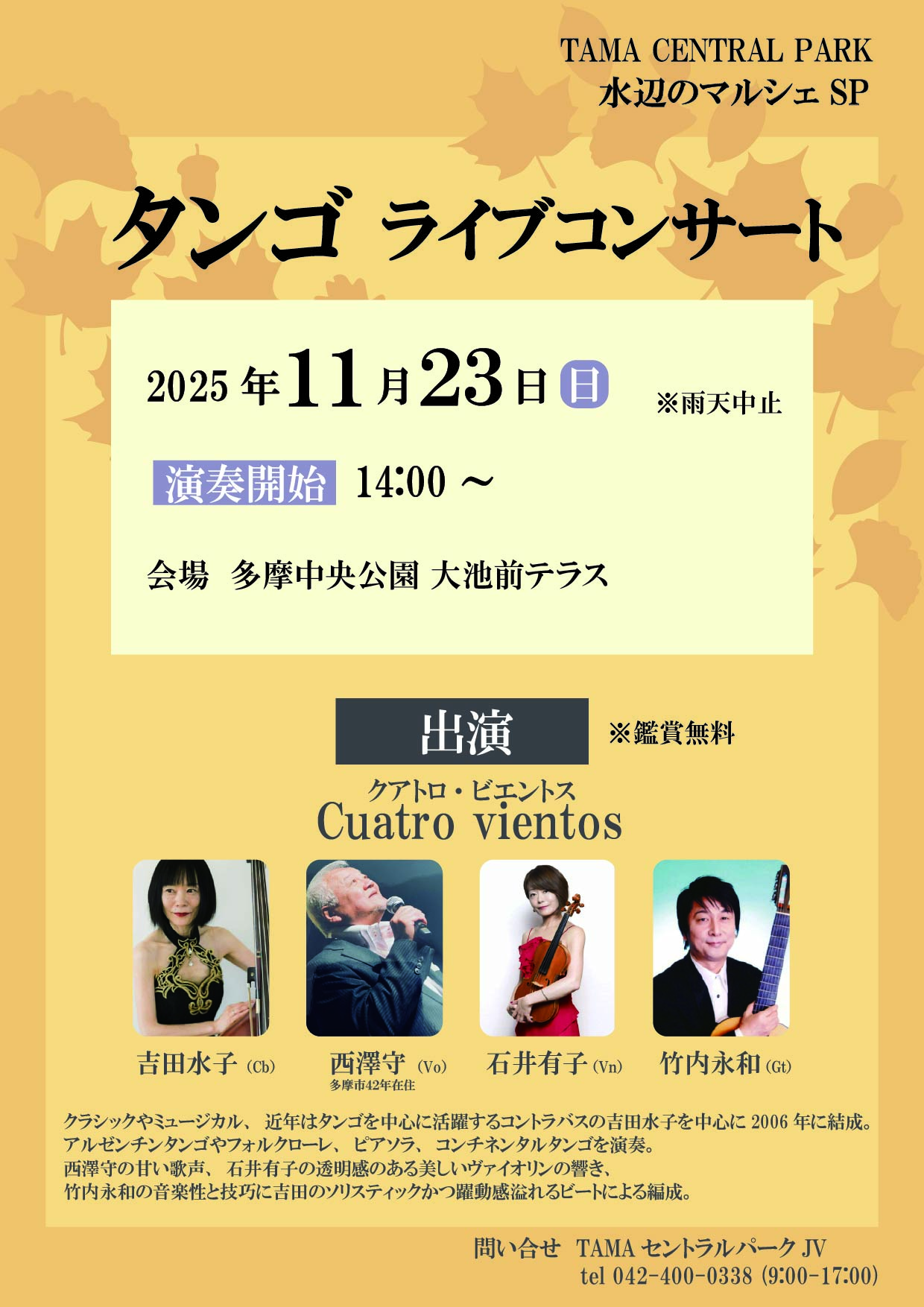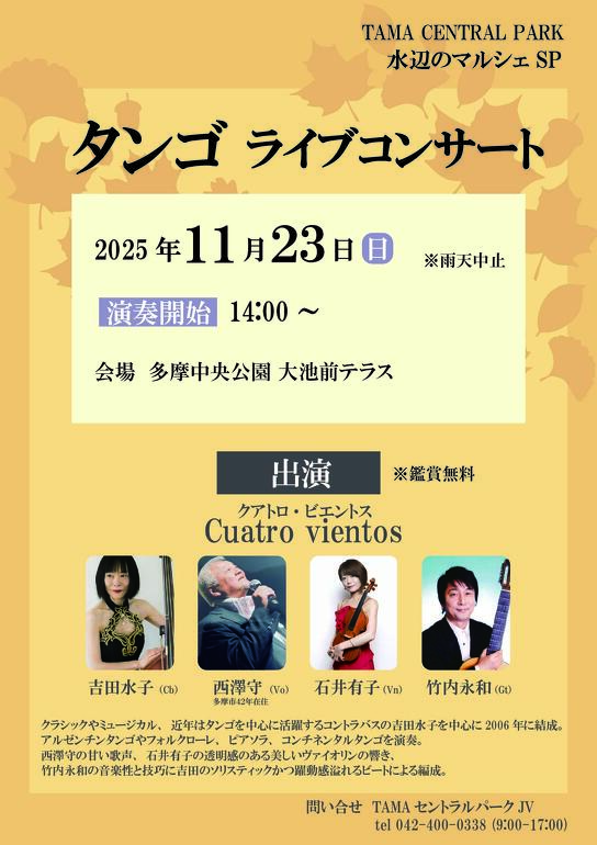 【問合せ】TAMAセントラルパークJV(多摩中央公園指定管理者) 042-400-0338(9:00-17:00)
