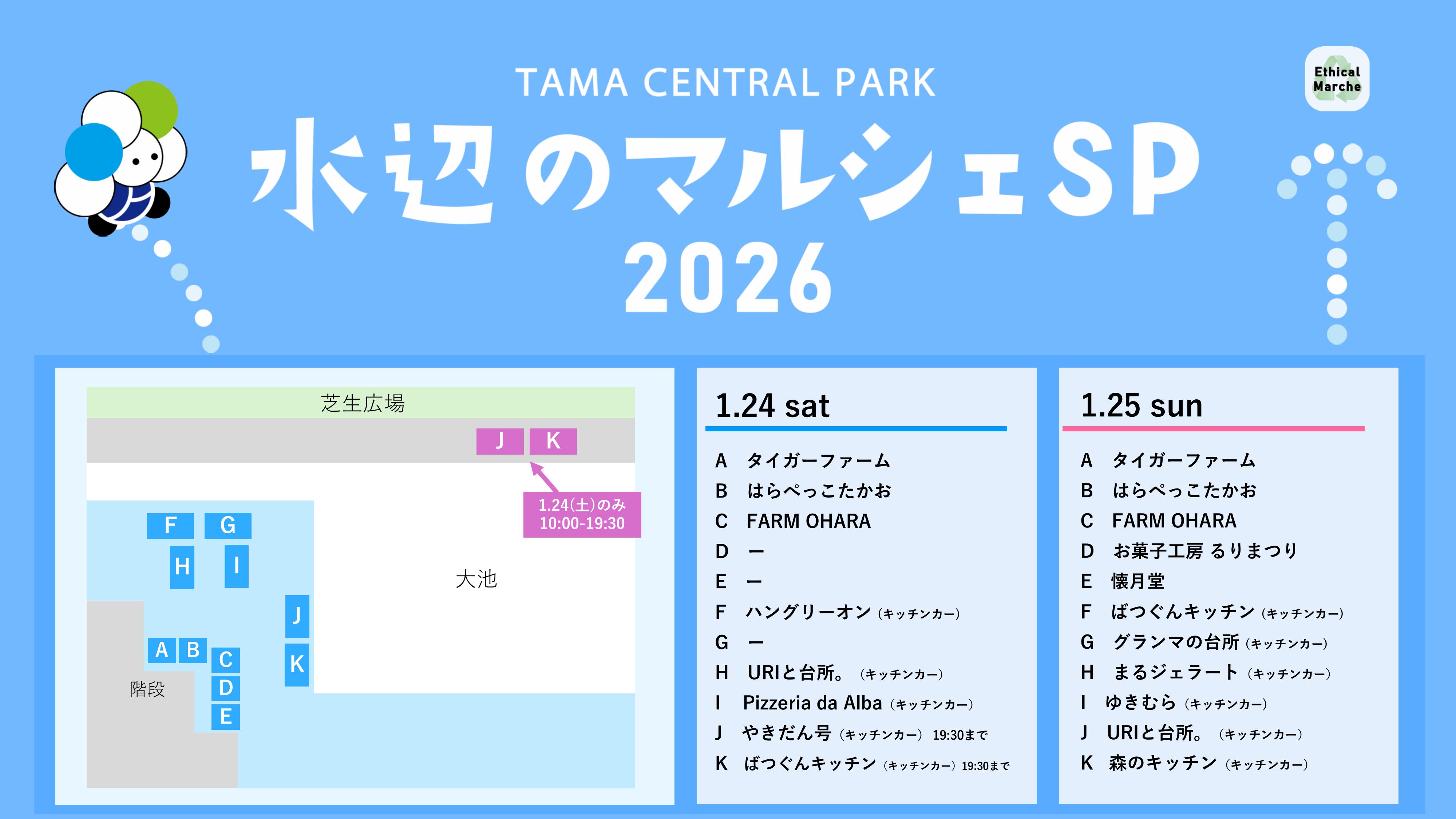 6月から毎月開催している「水辺のマルシェスペシャル」!1月は美味しいもののお店が出店。