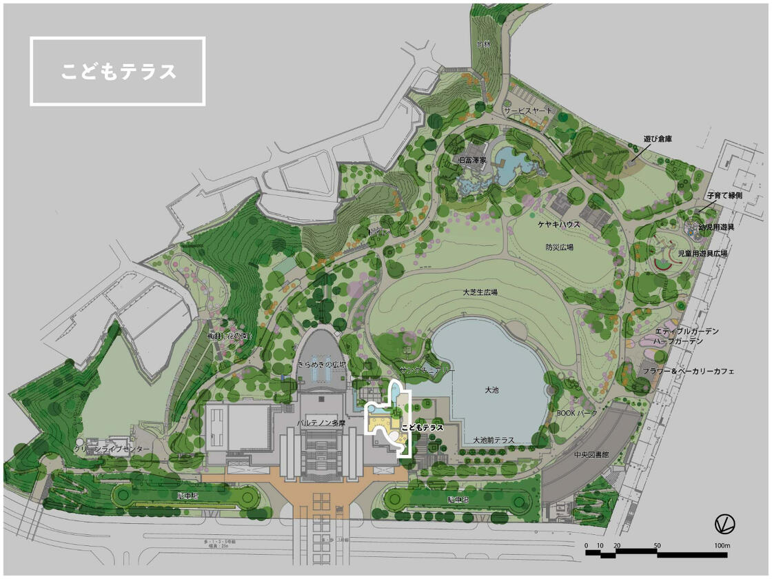 こどもテラス こどもテラス パルテノン多摩4階へと連絡するこどもの安全な遊び場 About パルテノン多摩4階 こどもひろばOLIVEより公園側出入口を外に出た場所が『こどもテラス』になります。 親子で安心・安全に遊べる場所として整備しました。エリア内はゴムチップ舗装になっており、小さな子も安心して体を動かせます。 また、こどもひろばOLIVEとの一体的な利用が可能です。 元気に遊ぶ子どもたちを眺めながら、子育て世代の自然な会話とコミュニケーションが生まれるような空間を、今後の運営のなかでも目指していきます。 供用開始 令和6年4月14日 MAP Photo gallery