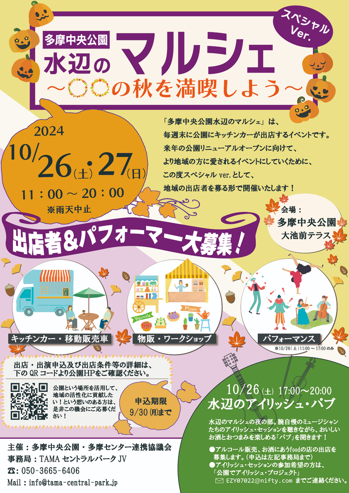【募集終了】10/26(土),27(日)多摩中央公園水辺のマルシェスペシャル~〇〇の秋を満喫しよう~出店募集のお知らせ