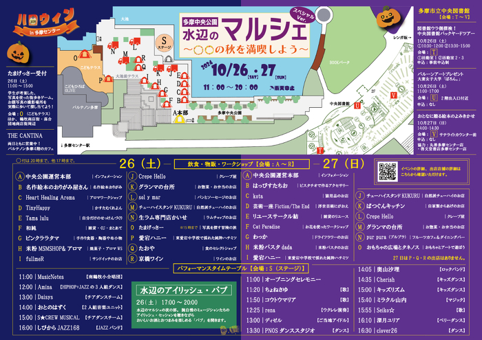 【開催終了】10/26(土),27(日)多摩中央公園水辺のマルシェスペシャル~〇〇の秋を満喫しよう~出店・出演情報