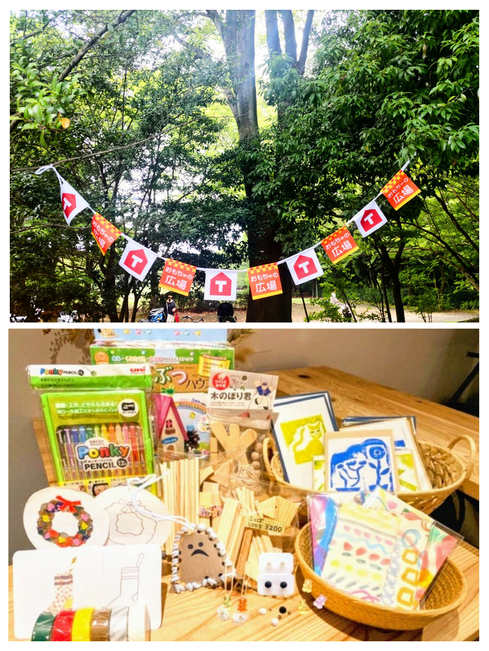おもちゃの広場は、おもちゃのスペシャリストであるおもちゃコンサルタントが開く遊び場です。沢山遊びましょう!アートの広場は聖ヶ丘にある美術教室と画材店、カフェ、ギャラリーが小さい店舗にぎゅ〜っと詰まっている『タネノス』からやってきました。おばけのオーナメントやマスキングテープで塗り絵などしてコースターを作ってみませんか?画材やアクセサリーの販売もあります。