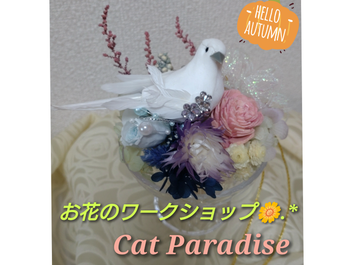 ガラスのデザートカップに、透明の柔らかいビーズを入れ、別カップにプリザーブドフラワーをメインにアレンジメント。お子様からご年配の方まで簡単に制作できます。基本のお花等のパーツ以外もご用意しております。