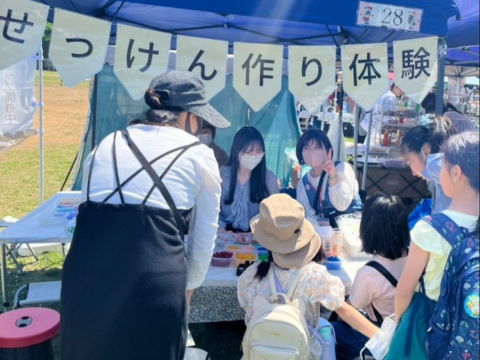 販売品目:グリセリンソープを用いた、固形石けん作り体験です。コロナ禍より手洗い促進運動として、お子様が自分で石けんを作り使いたくなワークショップを提供しています。