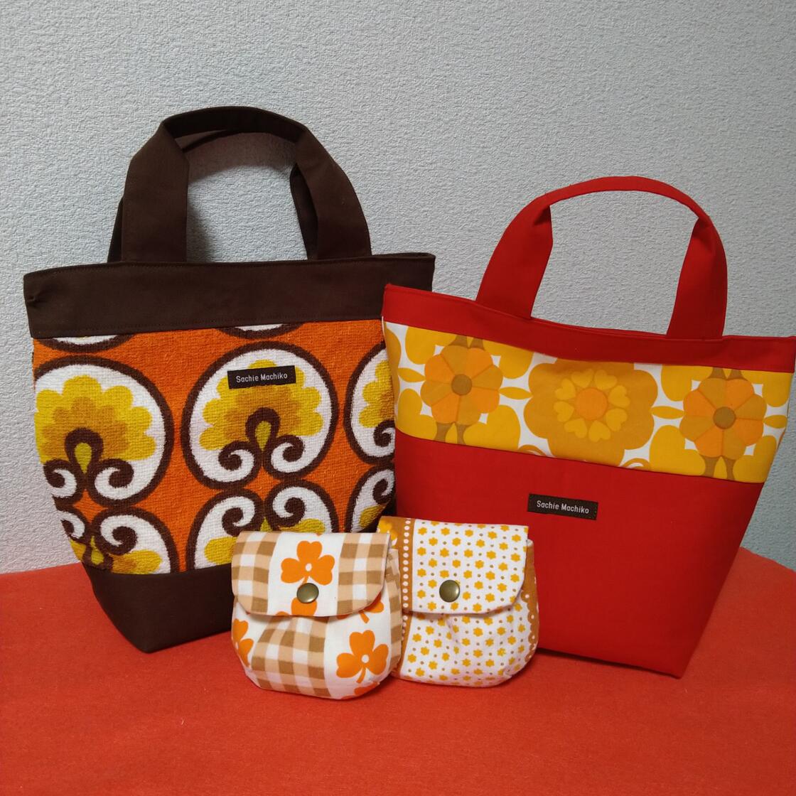 切り絵と布小物:レトロな柄とヴィンテージ生地を使ってトートバッグやポーチを販売します。