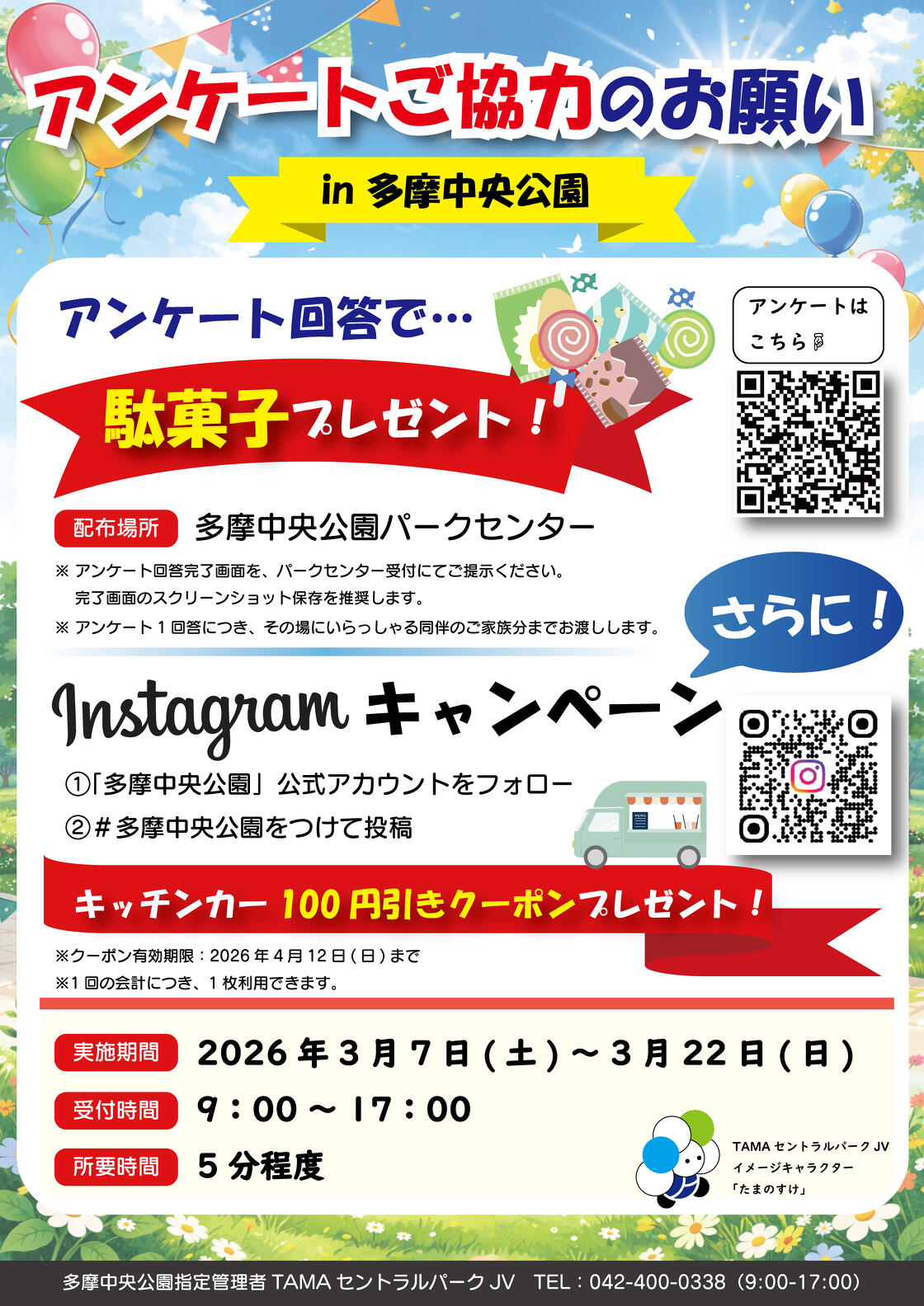 公園アンケート実施中!駄菓子プレゼント&割引券キャンペーン