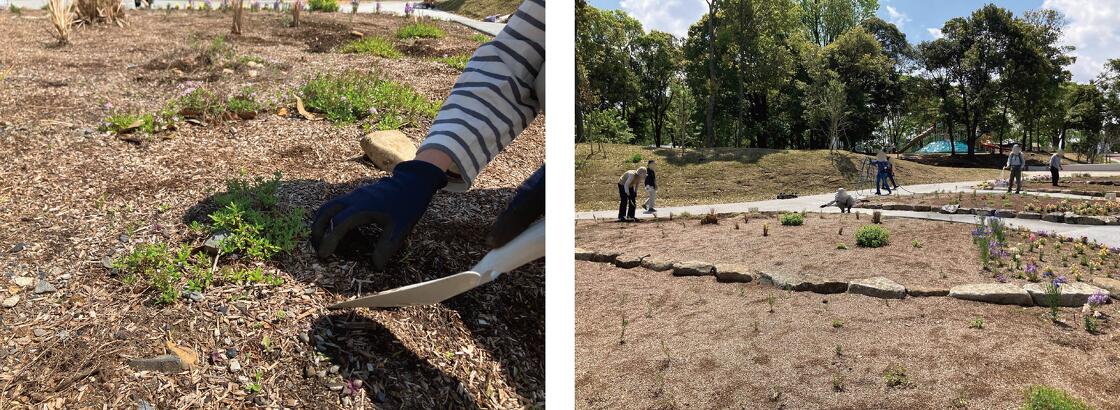 多摩中央公園ガーデンクラブでは、近隣にお住まいの皆さまが集まり、花壇の手入れや水やり、植え替えなどの活動を行っています。