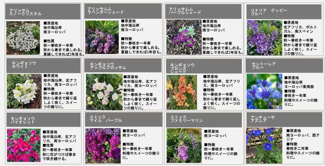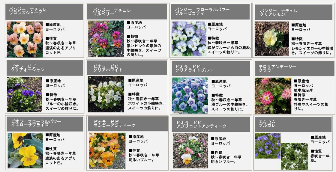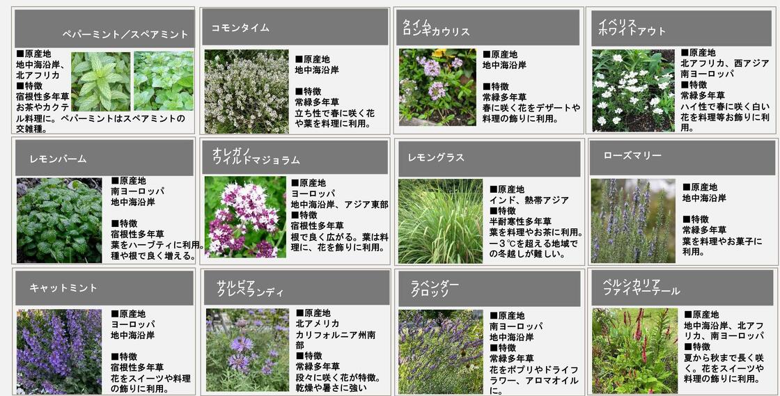 フラワー&エディブルガーデンやライブラリーガーデンでは、現在春に咲く一年草や、ハーブをはじめとする多年草を楽しむことができます。