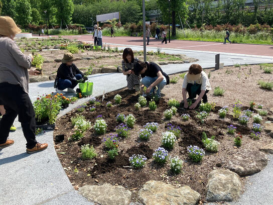 そしてこの度6月1日(日)には、その新しい花壇で、どなたでも気軽に参加できる花植え体験イベントを開催しました。