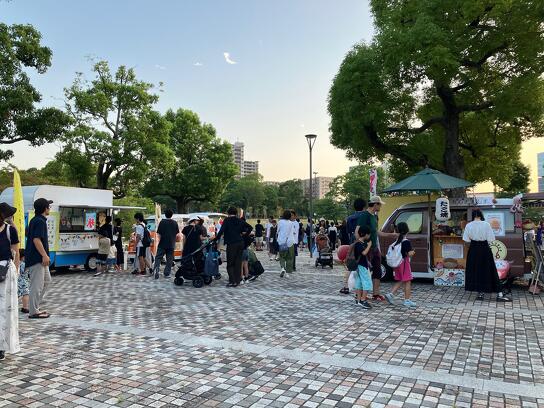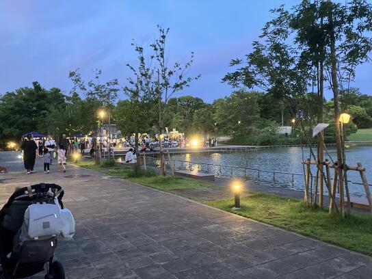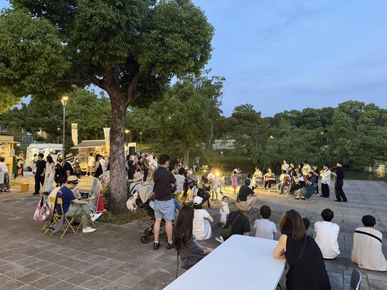 2025年08月20日(水) 水辺のマルシェ 水辺のマルシェSP「星空グルメナイト」開催しました! 多摩中央公園初のナイトマルシェ開催! 暑すぎて昼間の外出やイベントに参加するのが難しい夏時期! すこし涼しくなる夕方から夜にかけてナイトマルシェを開催、 ライトアップした大池前テラスで、きらきらとした水景を眺めながら、 美味しく心躍るひとときを過ごしていただきました。 来年もナイトマルシェを開催予定です。 当日の様子 多摩市で活躍するフラダンスのパフォーマンス 東京都立大学のアイリッシュ音楽研究会による音楽LIVE 夏といえば!カラフルヨーヨー釣り! グルメキッチンカーが勢ぞろい! ナイトマルシェに華を添えた魅力的なブース出店 日が沈むと心地よい風が吹く大池前テラス